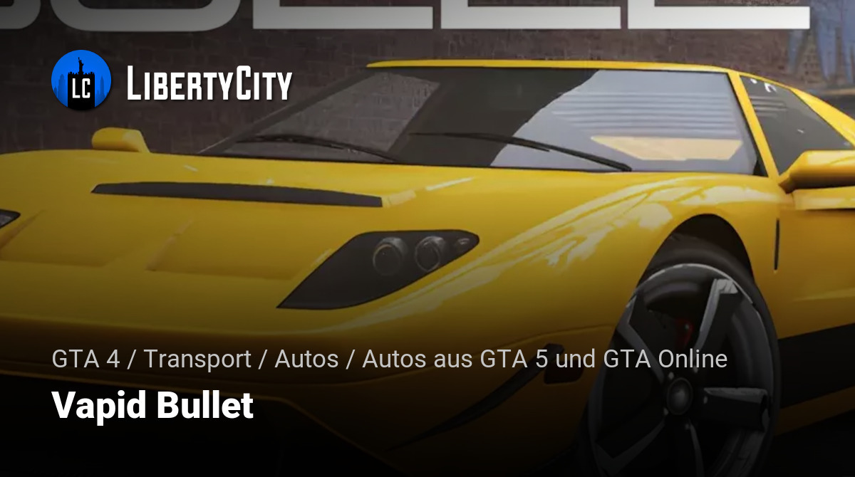 Der Vapid Bullet ist ein Sportwagen, der sich durch hohe Geschwindigkeit und ein stilvolles Äußeres auszeichnet. In dieser Modifikation wurden Merkmale wie Vertex Ambient Occlusion, metallische Lackierung, vibrierender Auspuff und ein animiertes Lenkrad hinzugefügt.