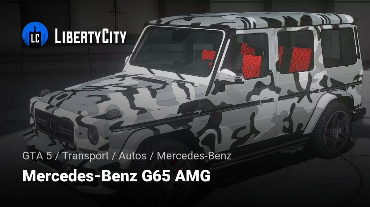 Mercedes-Benz G65 AMG für GTA 5. Der Mercedes-Benz G65 AMG ist ein leistungsstarker Geländewagen. Das äußere Design des G65 AMG zeichnet sich durch massive Formen, kantige Linien und einen charakteristischen Kühlergrill mit Doppellamellen aus. Er i...