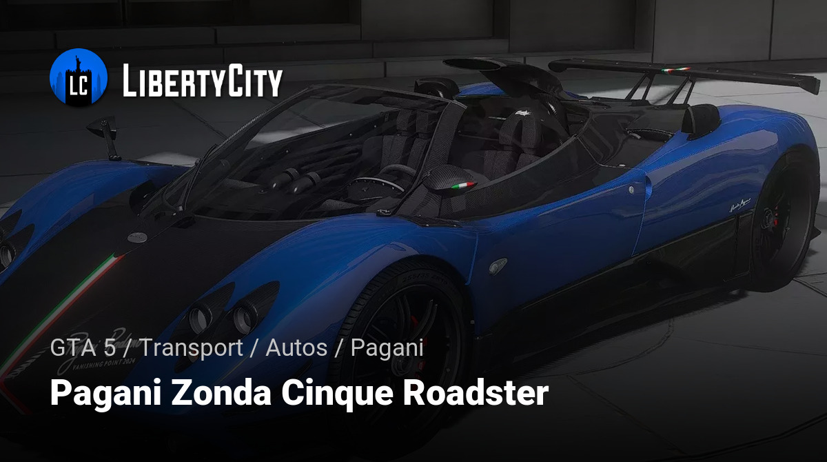 Pagani Zonda Roadster Cinque für GTA 5. Eigenschaften: Hochwertiges Modell; Unterstützt die Hauptfunktionen des Spiels; Hochwertige Texturen; Funktionierende Optik; Hervorragende Anpassung an ENB. Viel Spaß beim Spielen!