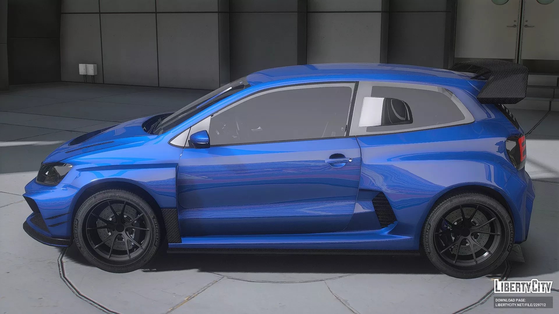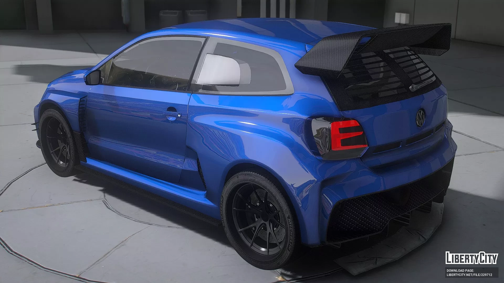 Volkswagen Polo Hycade для GTA 5. Передняя часть: Капот с выразительными вентиляционными прорезями и агрессивными линиями подчёркивает спортивный х...