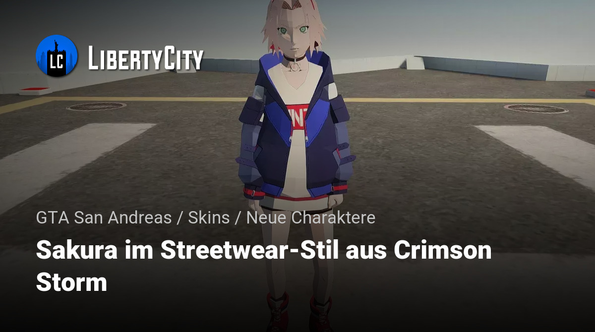 Sakura im Streetwear-Stil aus Crimson Storm präsentiert sich in einem modernen urbanen Look, der Alltagsmode mit Kampfelementen kombiniert. Dieses Design betont ihre Energie und Bereitschaft zum Handeln, selbst wenn sie lässig aussieht.