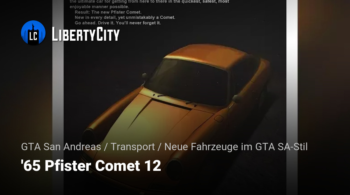 Это lore-friendly автомобиль, выполненный в оригинальном стиле игры. Модель вдохновлена легендарным Porsche 912 (1965 года) и представляет собой классический спортивный купе, идеально сочетающийся с эстетикой Сан-Андреаса. Машина детализирована, имеет качественные текстуры и полностью соответствует каноничному стилю транспорта GTA San Andreas.