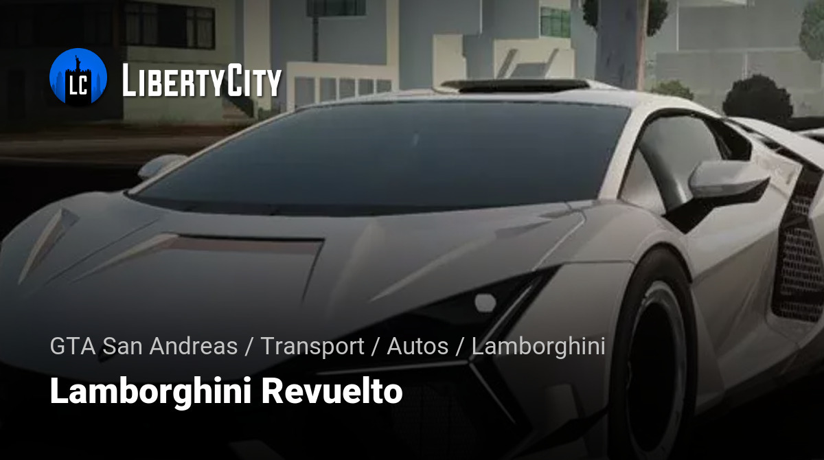 2024 Lamborghini Revuelto für GTA San Andreas. 2024 Lamborghini Revuelto ist ein neuer, stilvoller Sportwagen des italienischen Herstellers, der Sie mit seinem aggressiven Aussehen und seinen herausragenden Eigenschaften begeistern wird. Dieses Auto...